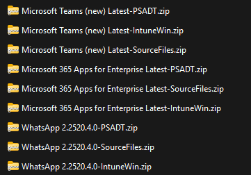 - An automation to download application “IntuneWin”, “SourceFiles” and “PSADT” files to a backup location (e.g. SharePoint). See the Powershell script example on how to download to your local machine
